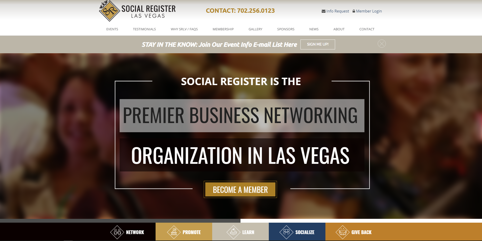 Social Register is the largest networking organization in Las Vegas. They were operating on an old early 2000’s build that had no mobile responsive features, and no onramping or onboarding processes to aid the acquisition of new clients. They also only had about 7 pages and was all very basic text. And when you’re a networking organization with almost 3,000 members that are business owners you know you need to keep up with times! That’s why they partnered with me to re-vamp their online presence and capacity for acquisition.